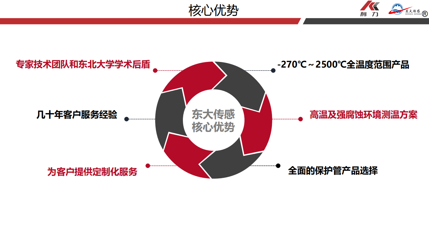 沈阳东大传感技术有限公司前身为东北大学传感器厂,1999年改制成立,2024年并入上市公司柯力传感。作为教授创办的专家型高新技术企业,公司专注于高端温度传感器定制研发与测温技术服务,核心产品覆盖-270℃~2500℃全温区。