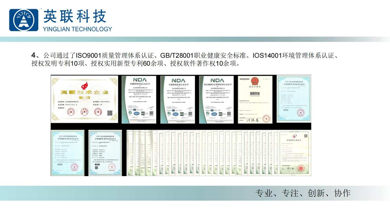 英联科技通过 ISO9001、ISO14001、OHSAS18001 等管理体系认证,拥有 多项发明专利、60+ 实用新型专利、10+ 软件著作权,产品已覆盖全国 1000+ 所高校。