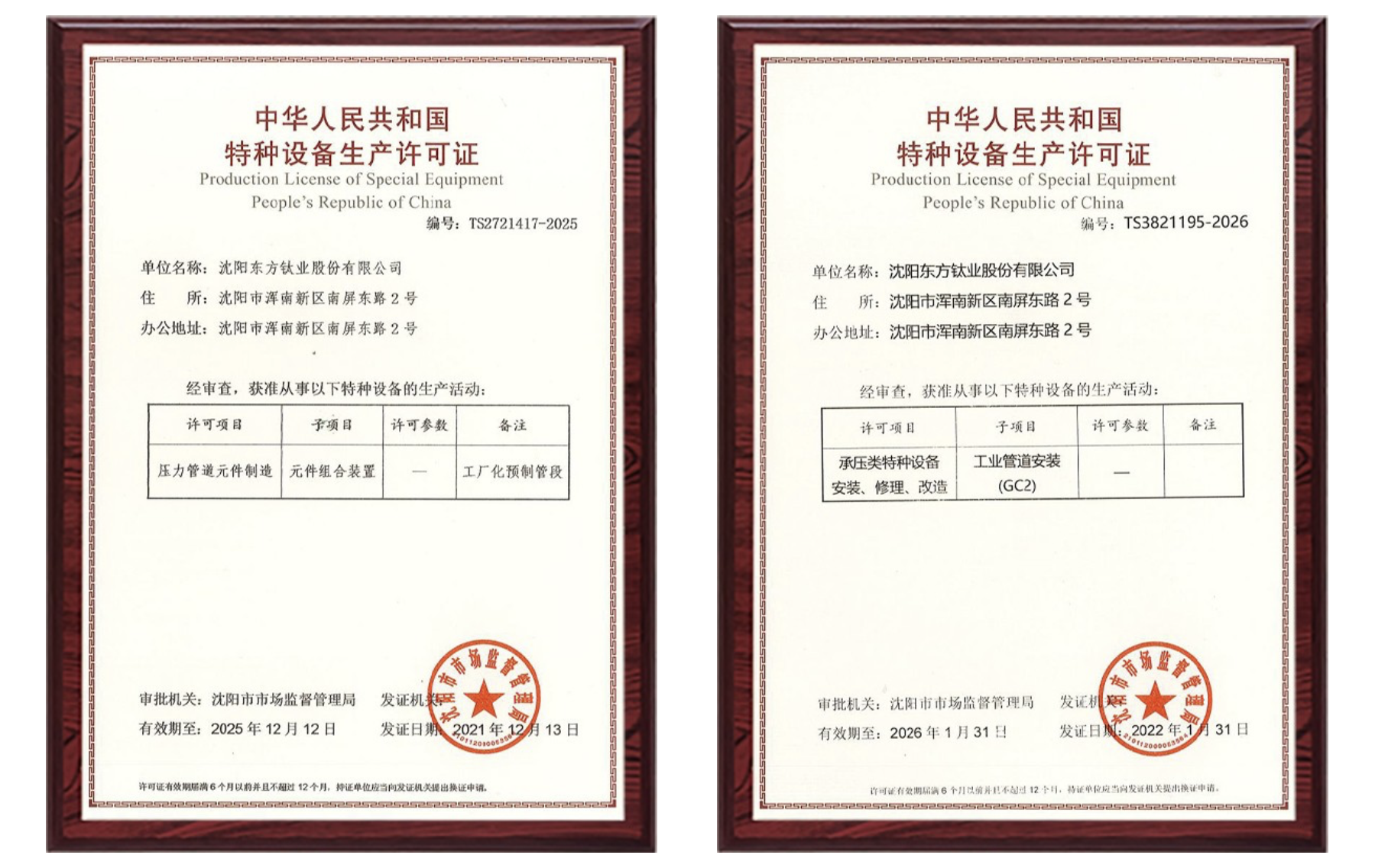 拥有 A2 级压力容器生产许可证、GC2 级压力管道安装许可证。